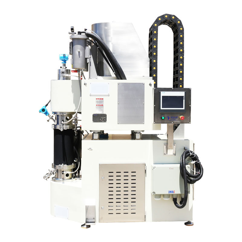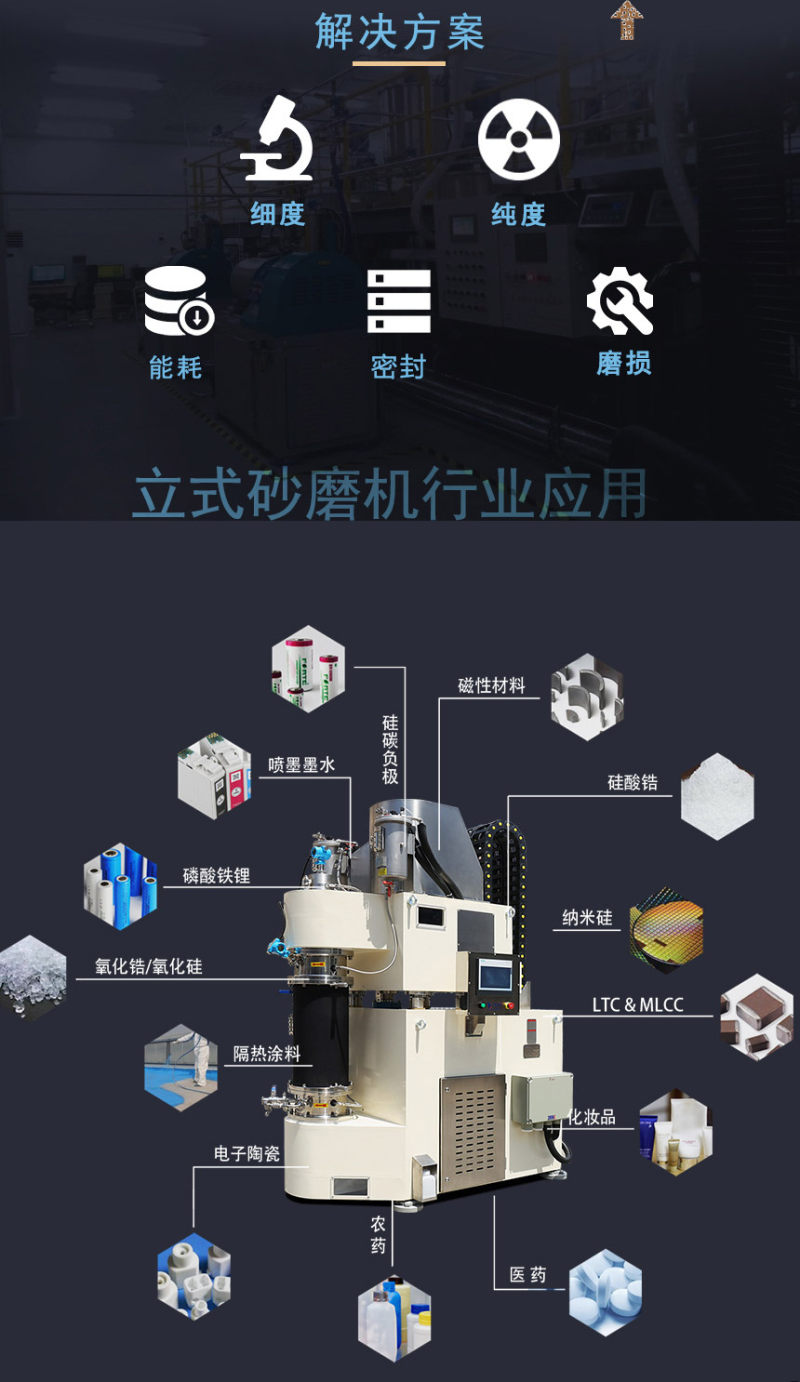 LS-K双动力立式砂磨机,主要用于一些高端的材料,如MLCC、氧化铝、氧化锆、磷酸铁锂、硅碳负极及其它新材料领域的纳米研磨。除具备单核动力优点以外,其分离轮与转子为各自独立的主轴及电机,互不影响,转子可以开较低的速度,而分离轮可以开较;立式布置 , 确保所有物料自下而上全部经过研磨 , 无研磨死角 , 确保粗大颗粒急剧减少 以及漏磨大颗粒对品质的影响 。 浆料循环顺畅,不存在沉淀及未分散的浆料 。